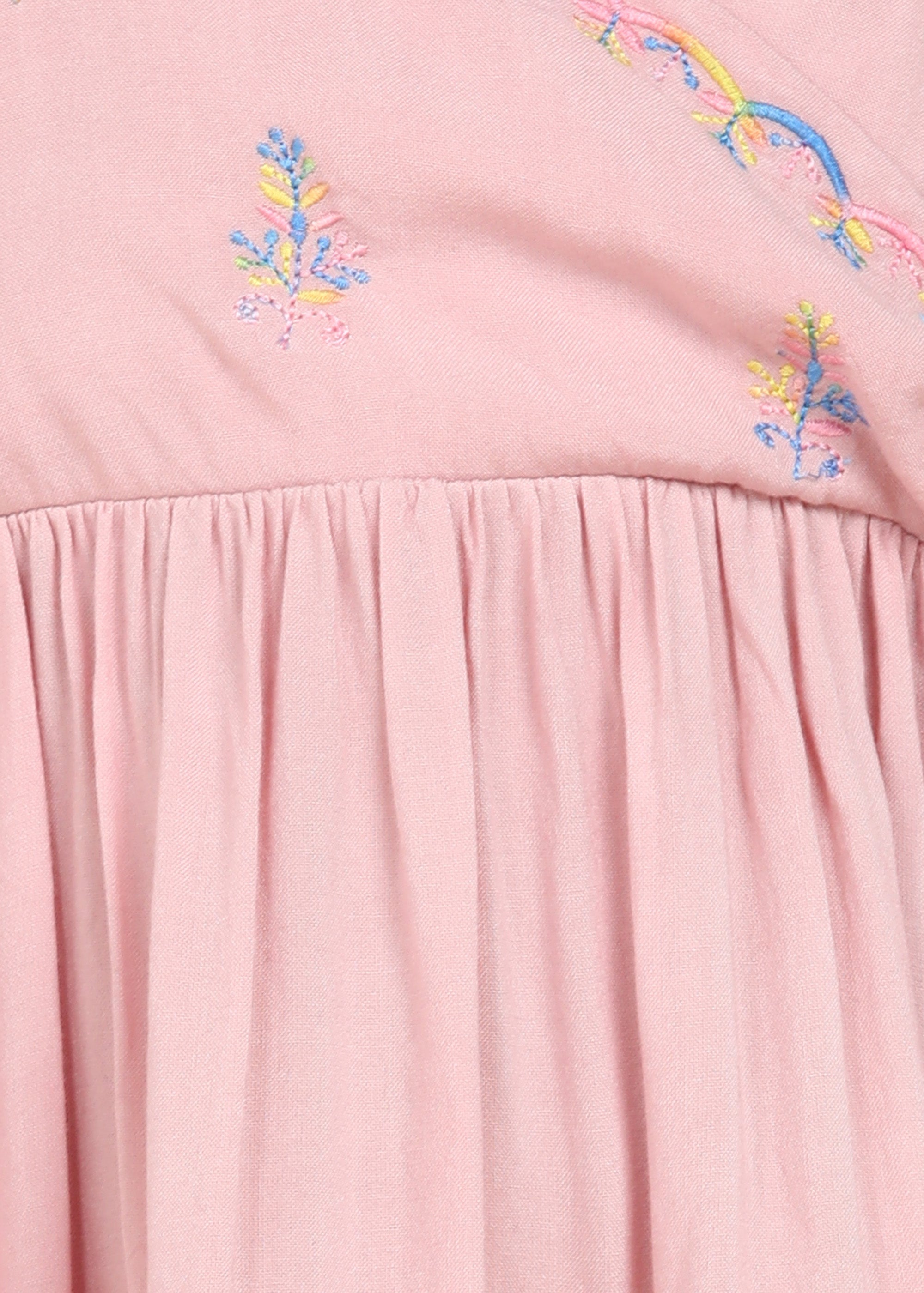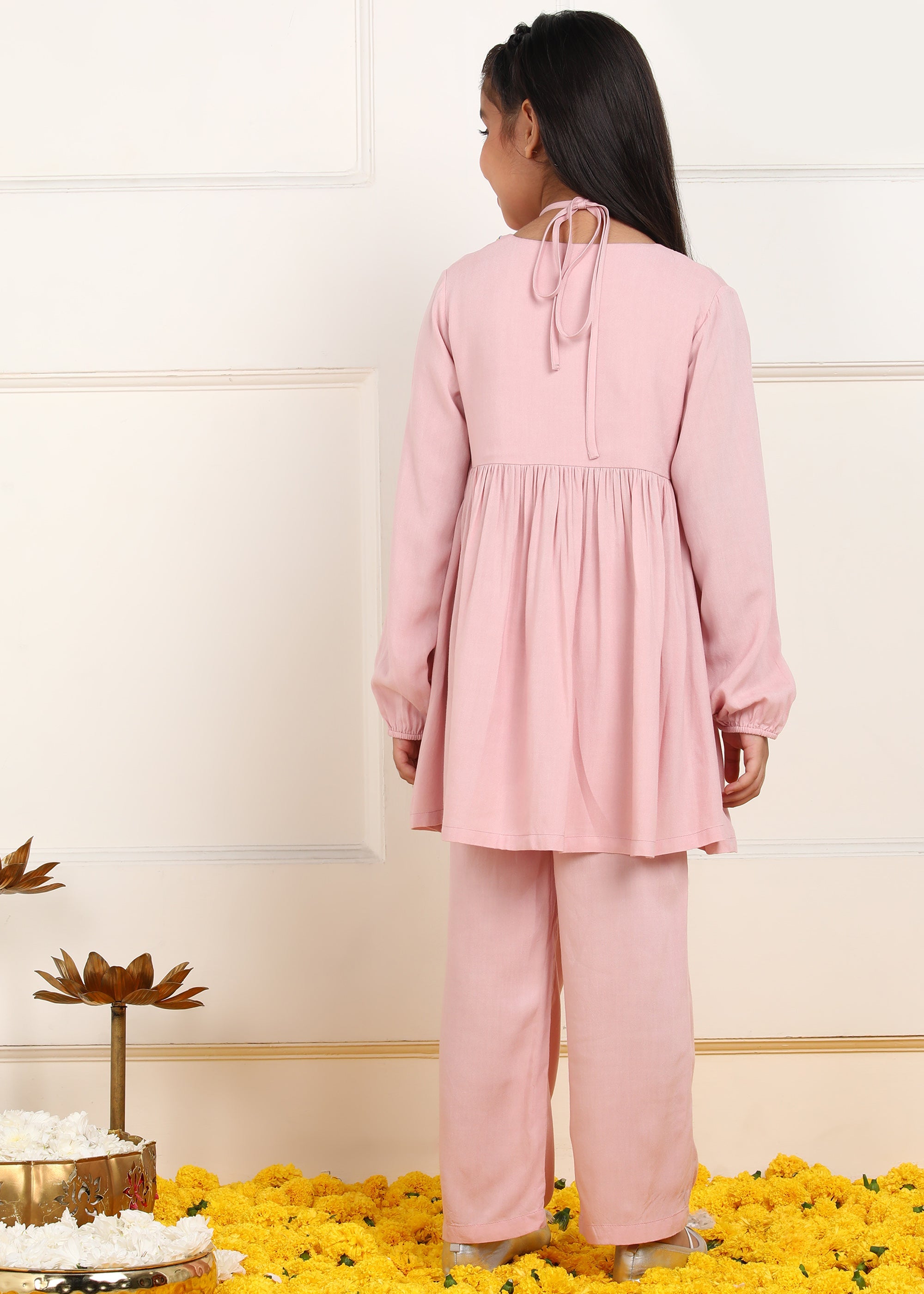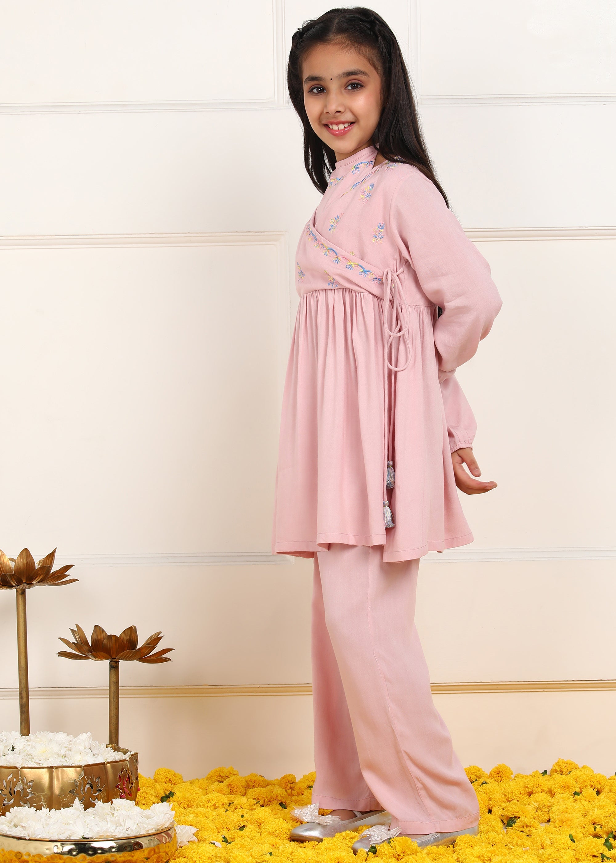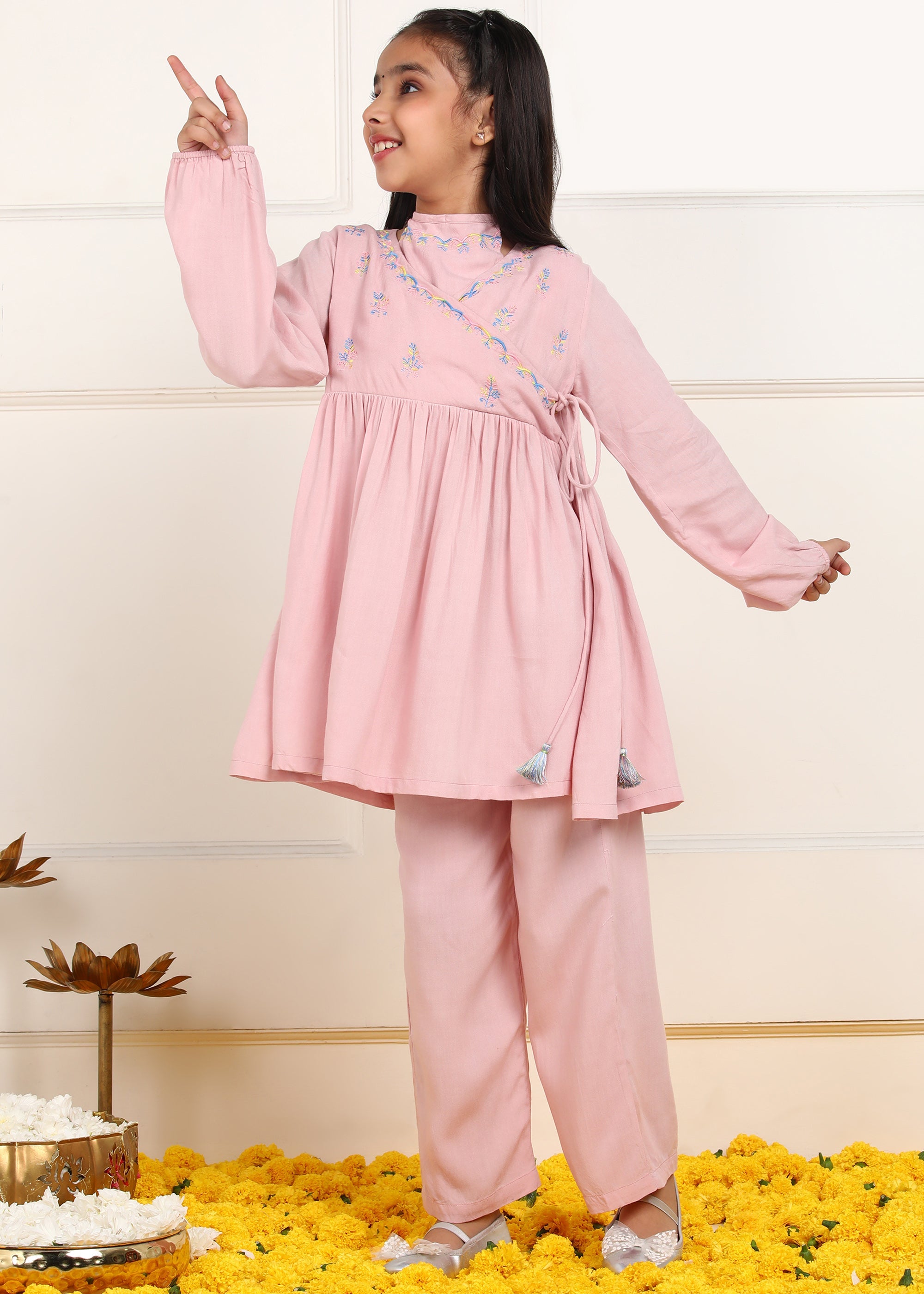 Julie Girls Floral Embroidered Kurta & Trouser Set - Pink