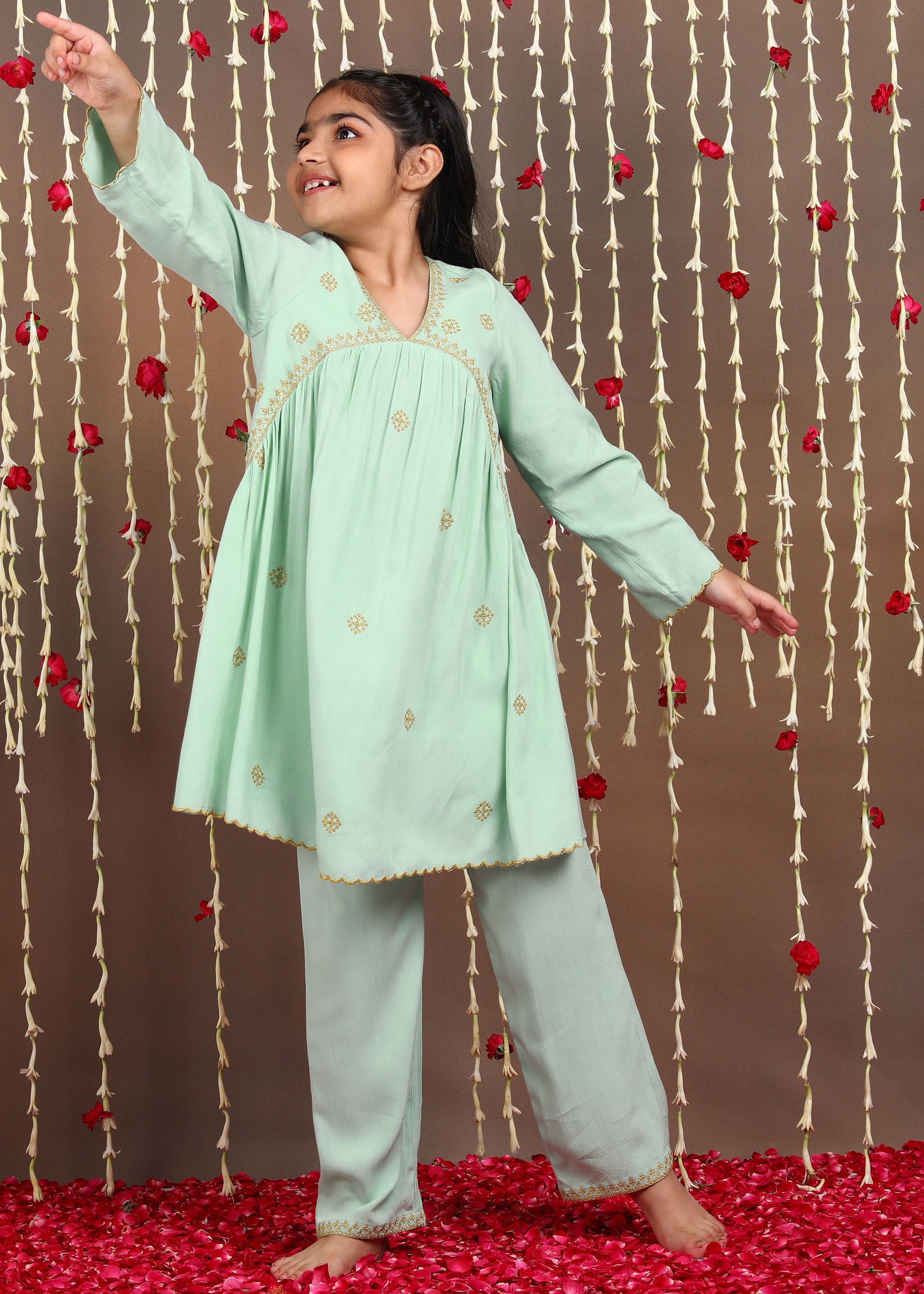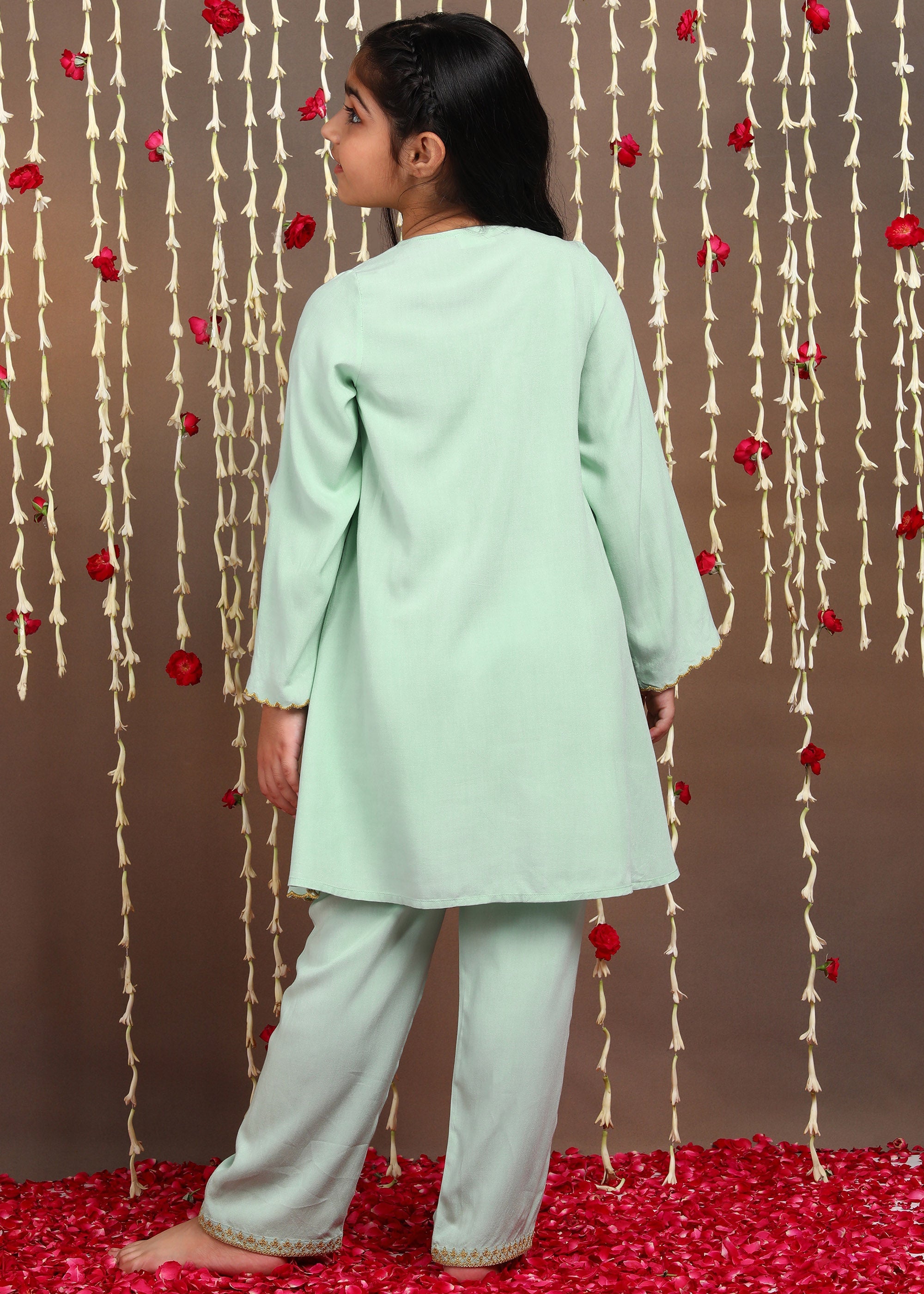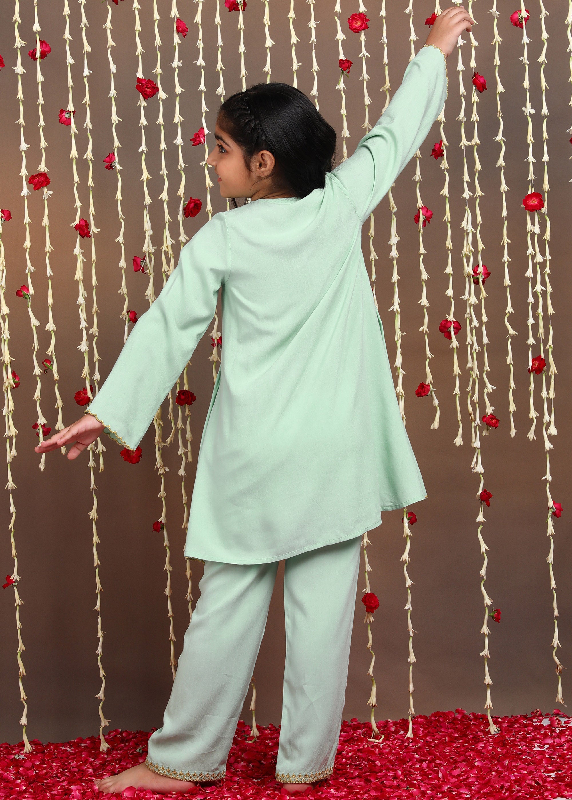 Libra Girls Embroidered Kurta with Trousers- Powder Green