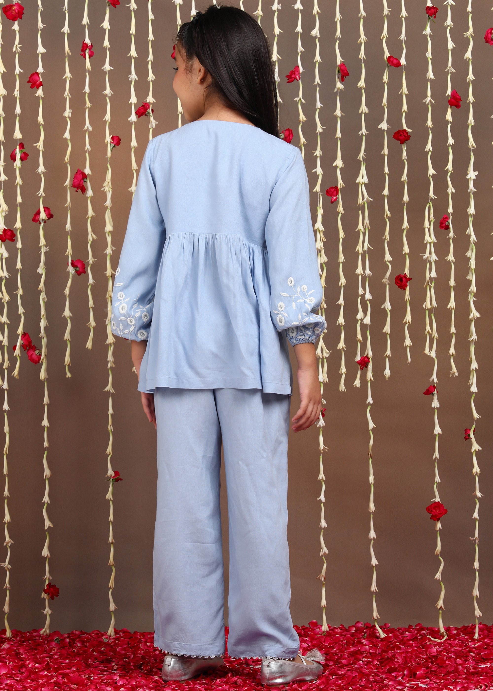 Nivy Girls Floral Embroidered Kurta With Trousers - Blue