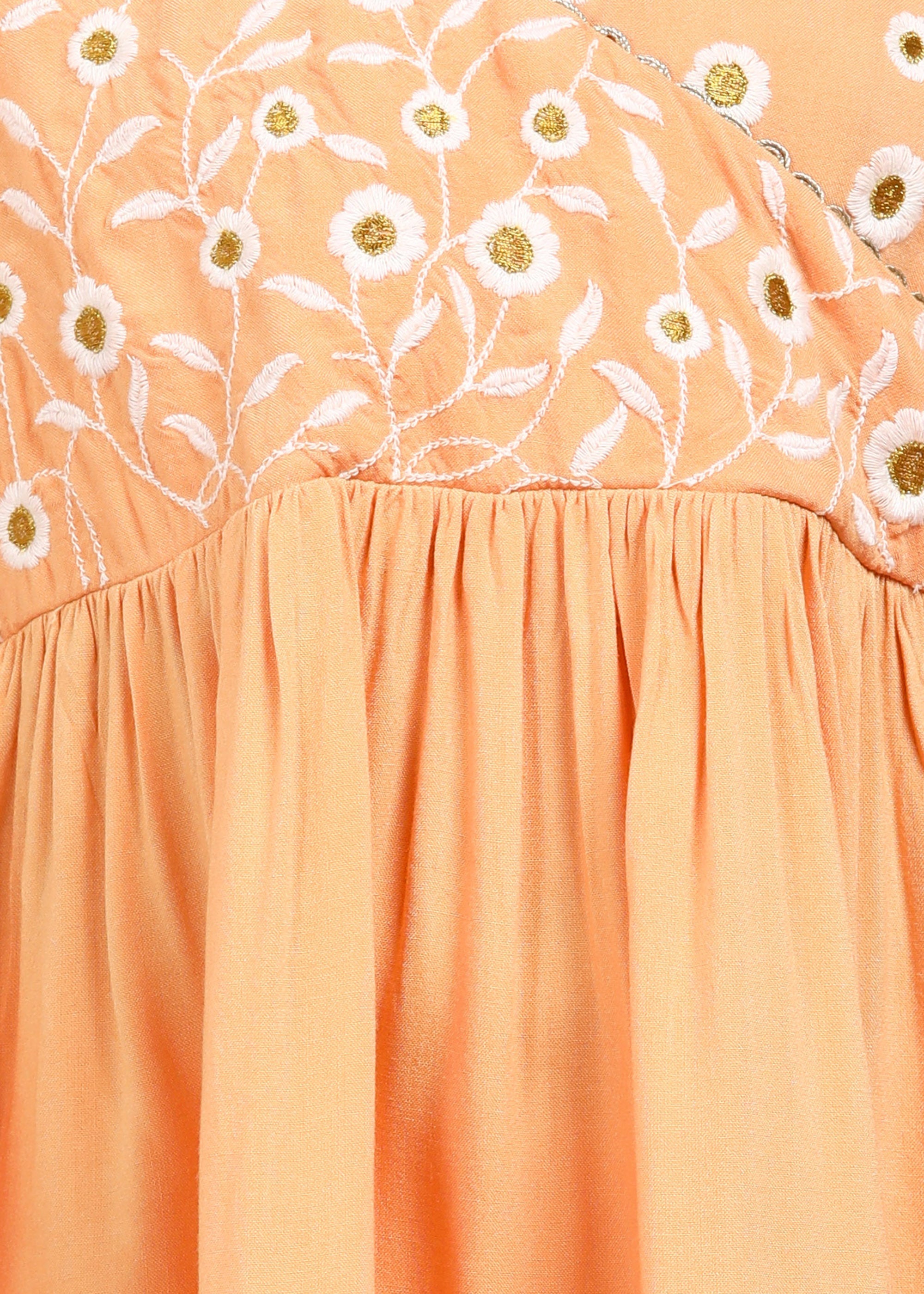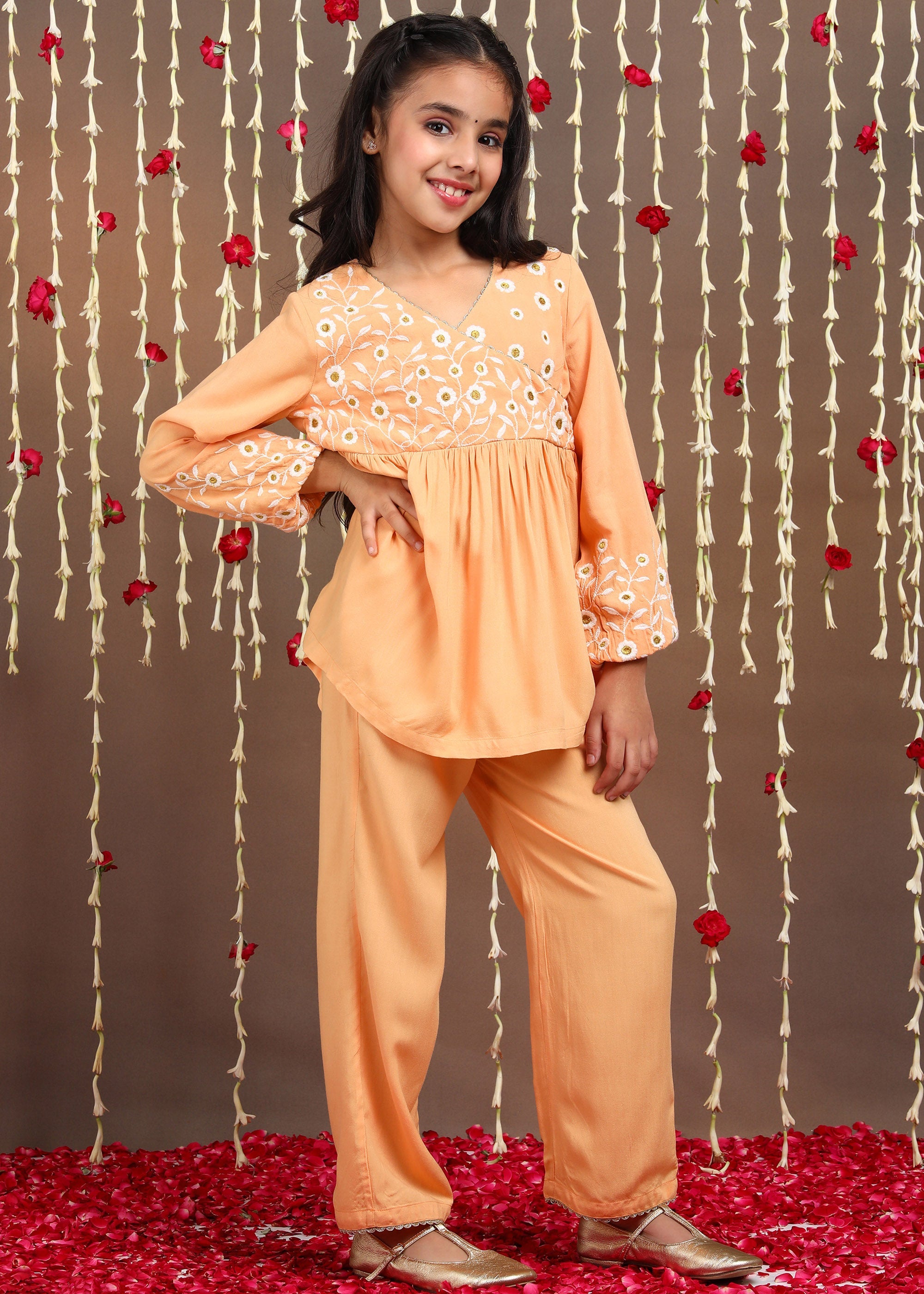 Nivy Girls Floral Embroidered Kurta With Trousers - Peach