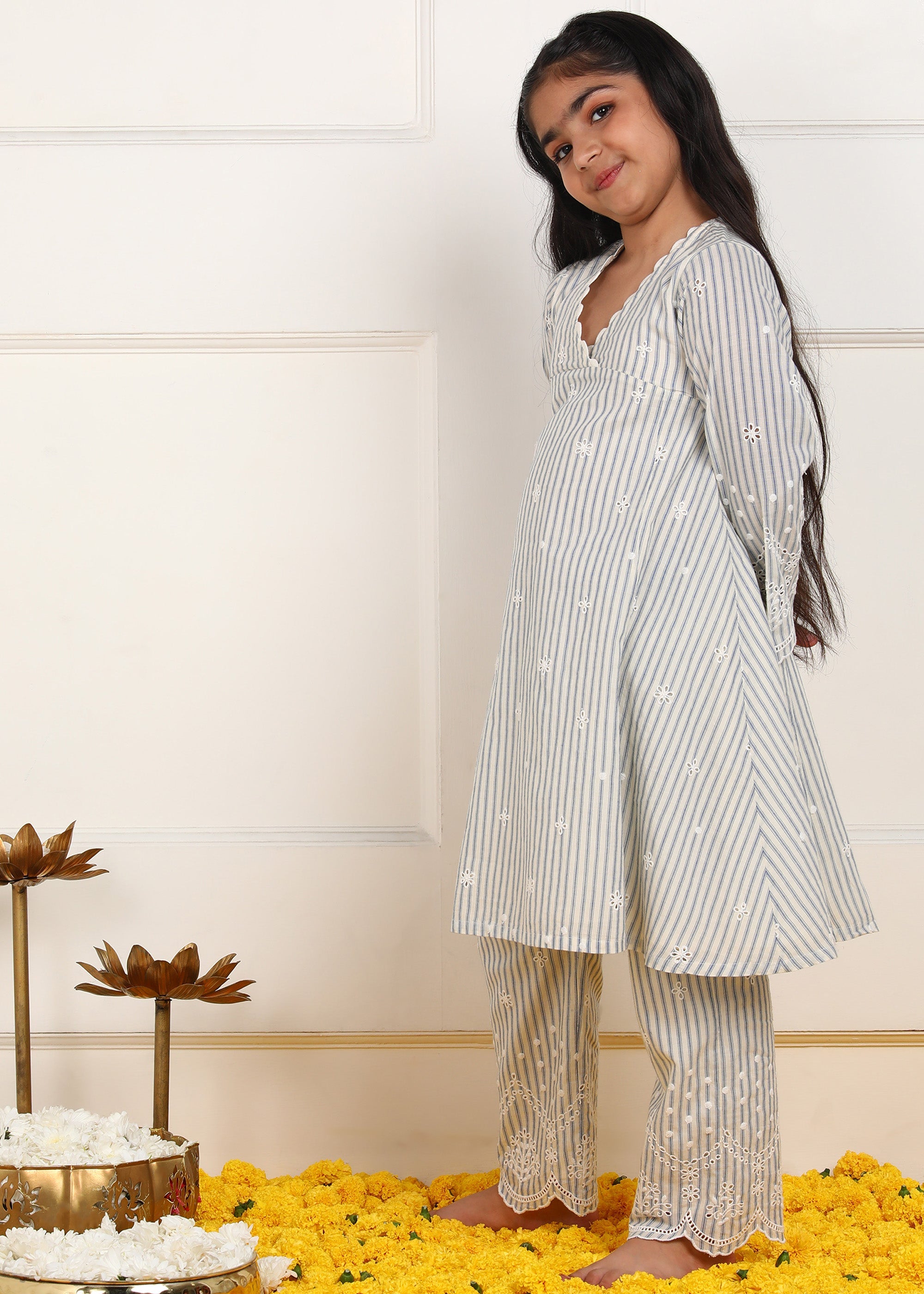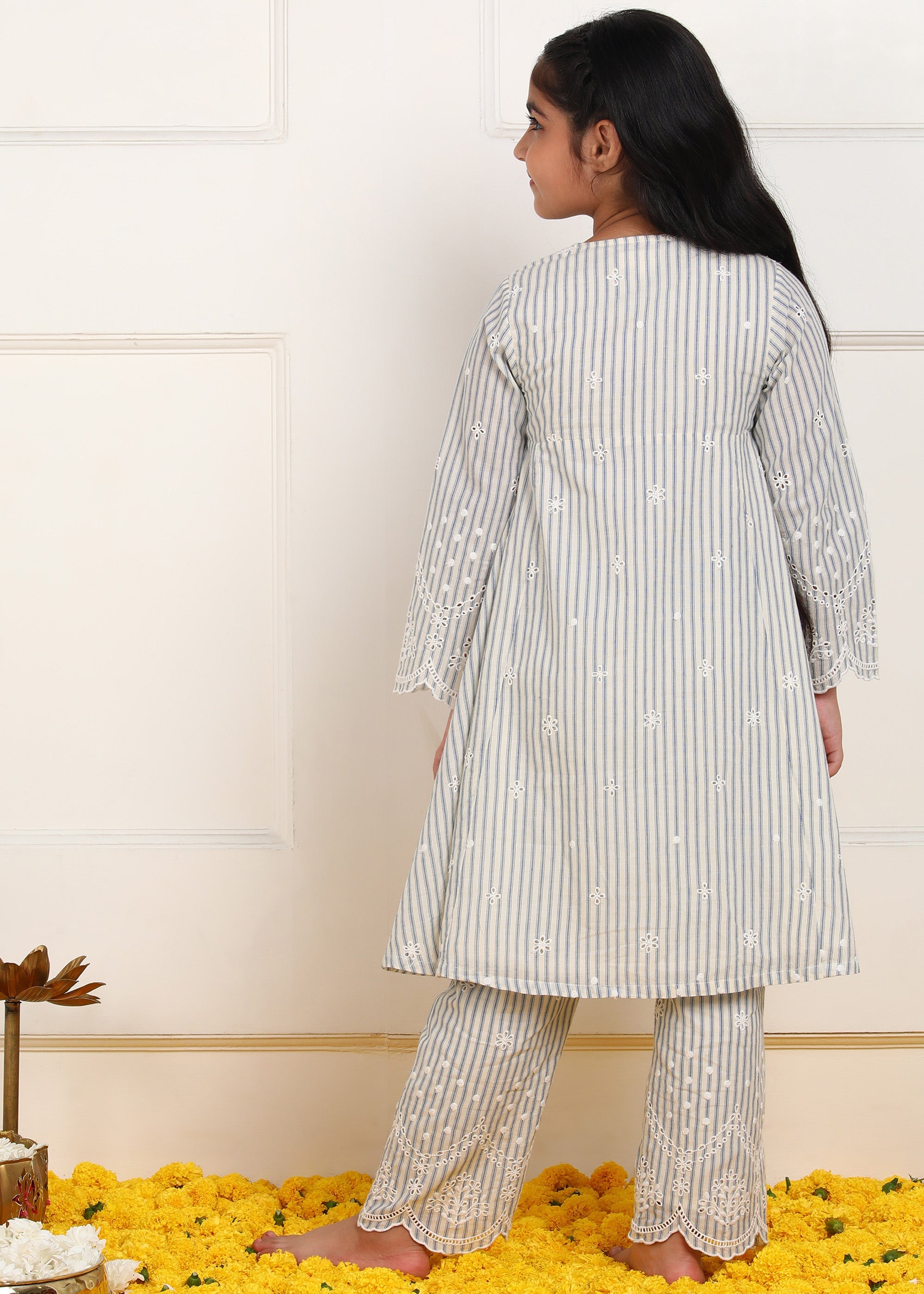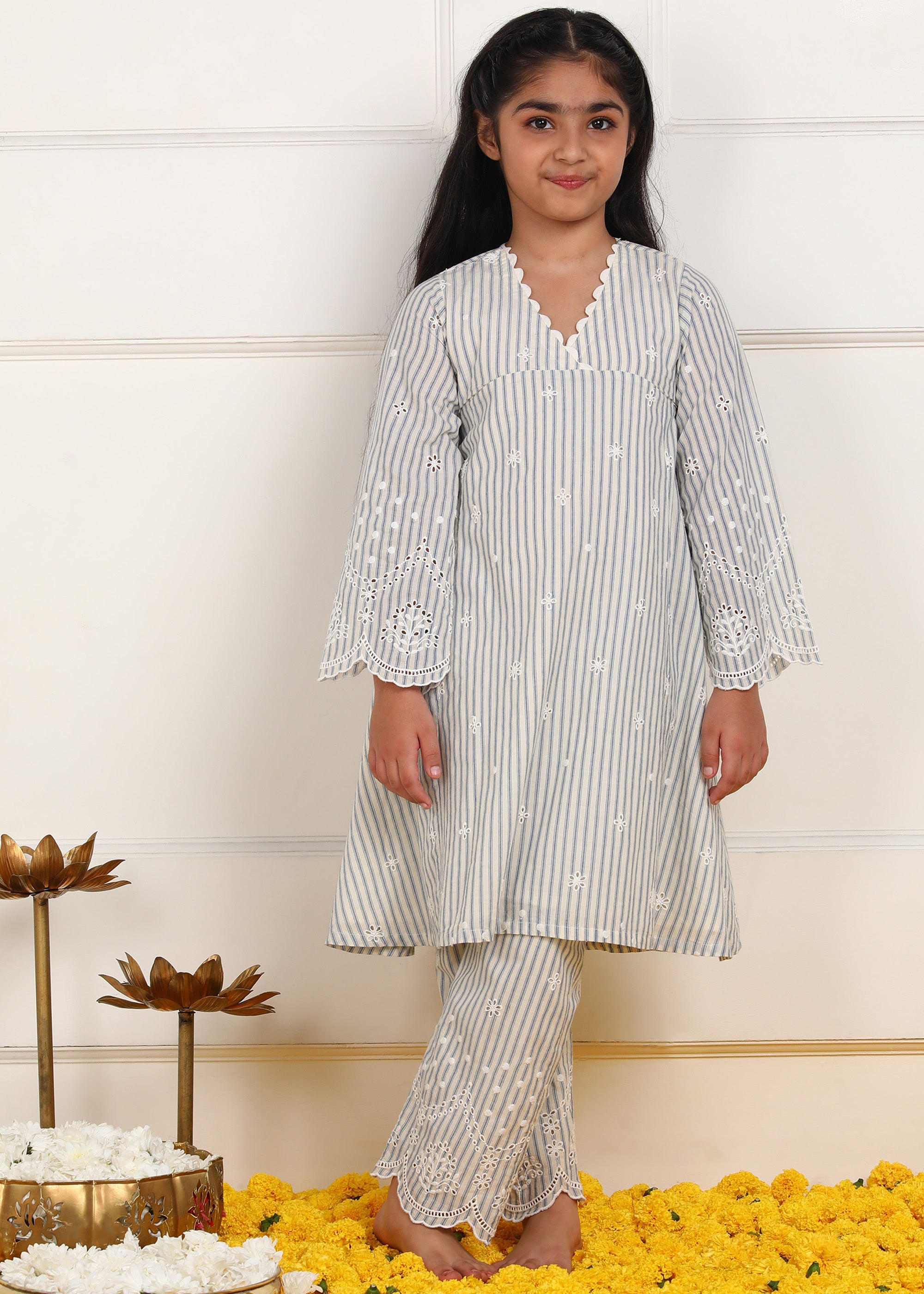 Vanya Girls Embroidered Kurta & Trouser Set - White